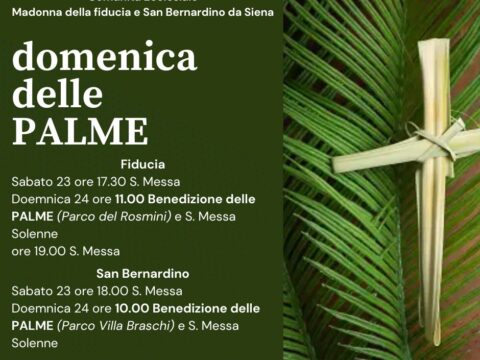 24 marzo Le Palme Madonna della Fiducia: Benedizione delle Palme ore 11.00 in cappellina nel Parco Rosmini processione fino in Chiesa e Santa Messa Solenne…