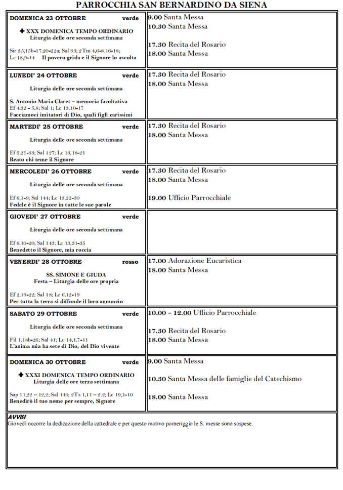 Posted in Calendario Calendario Parrocchiale 23-30 ottobre 2022 Author: administrator Published Date: 25 Ottobre 2022 Author: administrator